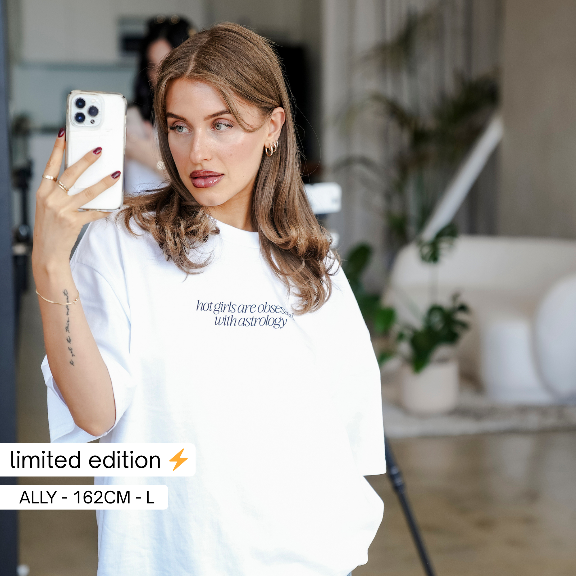 Crafted from 100% premium cotton at 250gsm, this tee has weight, structure, and softness. The fabric feels substantial, smooth against the skin, with just the right drape. Dropped shoulders and a boxy fit add that effortless edge, whether you’re lounging, layering, or fully in your main character era.